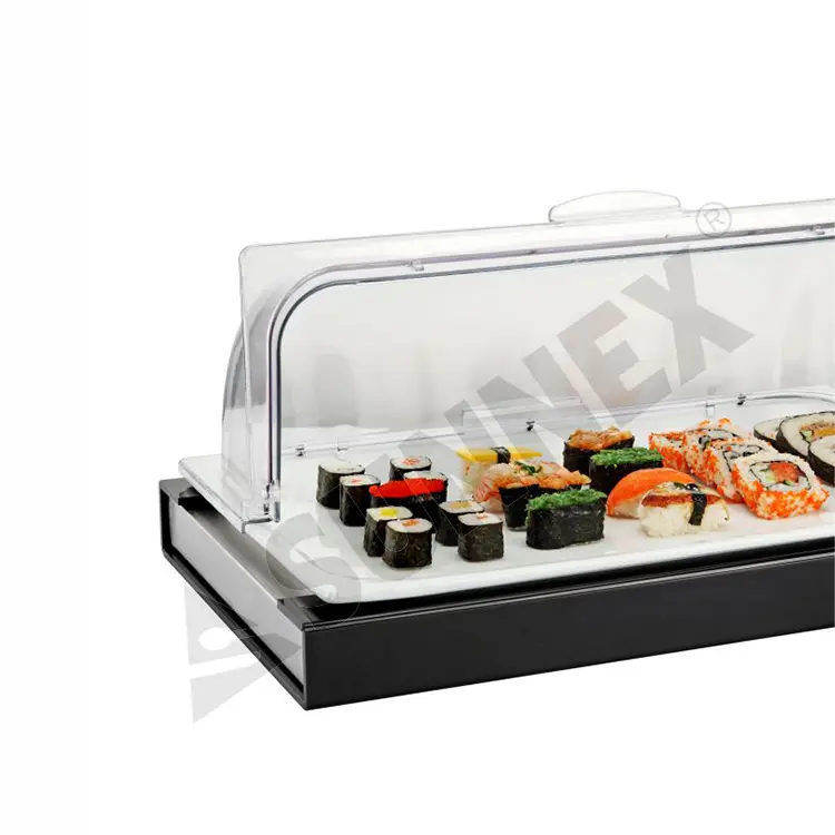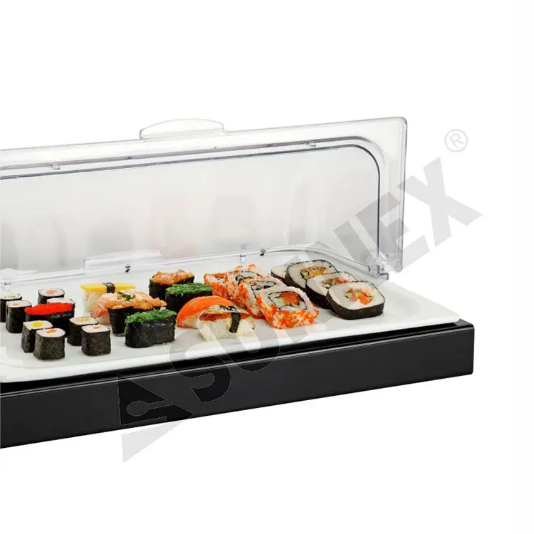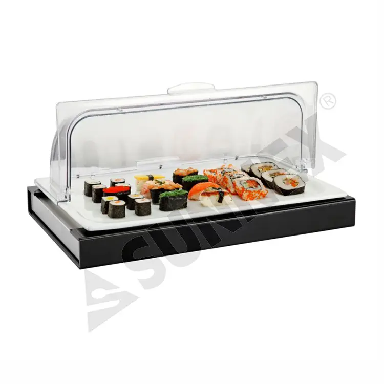 Paquete de enfriamiento de acero inoxidable, Bandeja de comida de porcelana, Marco acrílico, PC ROLL TOPP TOPPA |