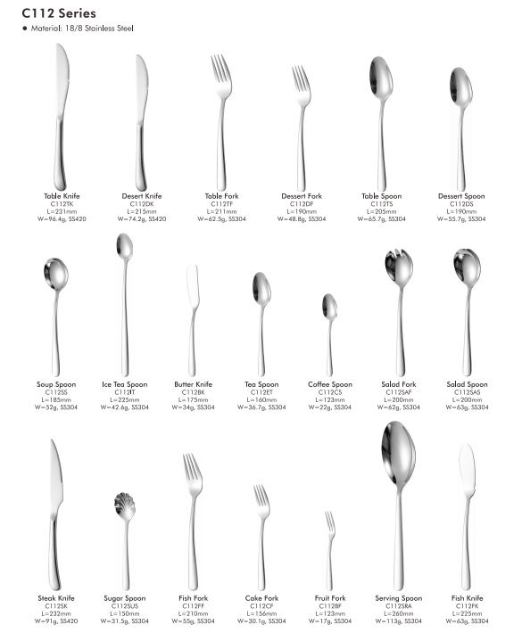 La serie C112 está fabricada por expertos con acero inoxidable 18/8 de alta calidad.