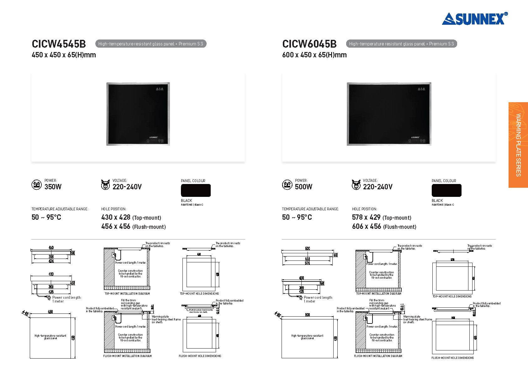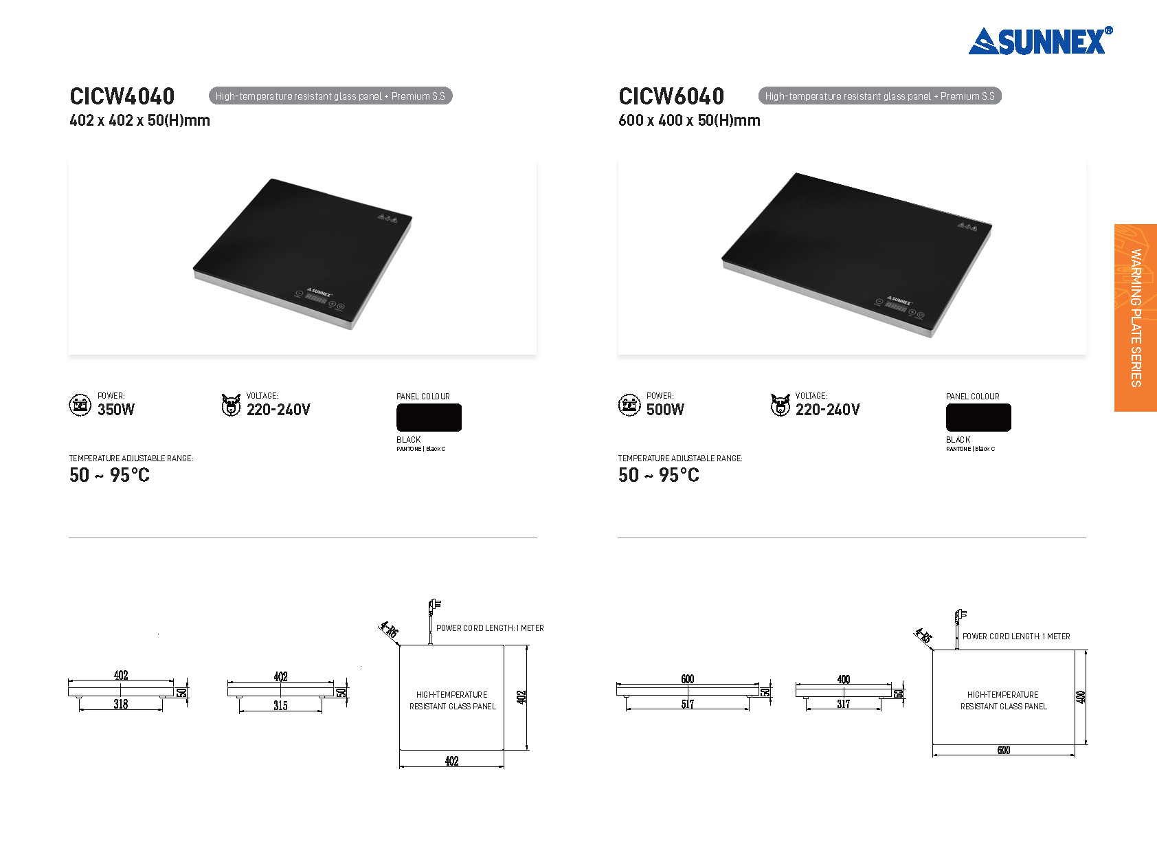 SERIE DE LÁMPARAS CALENTADORAS DE ALIMENTOS SUNNEX