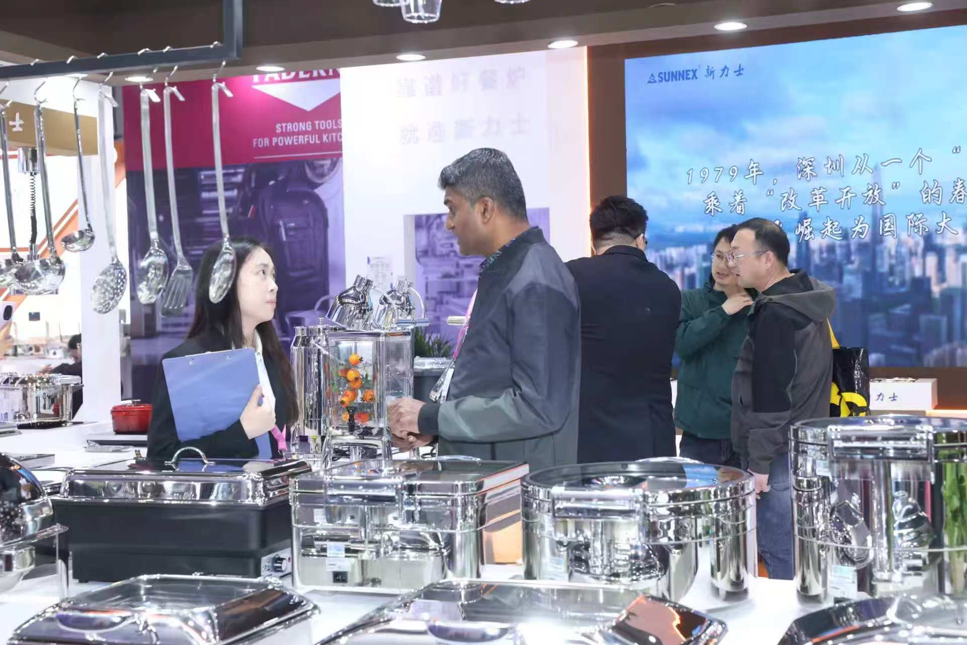 Durante la exposición, la marca se centró en mostrar los más vendidos, incluidos los calentadores secos sin agua, las clásicas ollas gastronorm de acero inoxidable, las urnas de leche de la serie Verona, los dispensadores de bebidas con tubos de hielo y otros productos nuevos, que satisfacen diversas necesidades de hoteles de alta gama, marcas de cadenas de catering y comedores para el personal. Nuestro stand recibió visitas continuas de compradores extranjeros profesionales de Medio Oriente, África, Europa, América y el Sudeste Asiático. Nuestro equipo profesional brindó presentaciones de productos individuales y soporte de soluciones personalizadas para discusiones de cooperación en profundidad.
